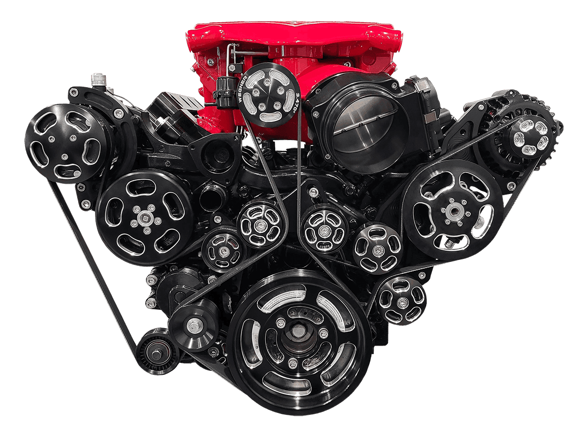 This kit includes only the supercharger and built-in intercooler and intake manifold system. No heat exchanger, piping, fuel system, or any other parts. Must use Wegner Accessory Drive System, available as an option for this kit.
