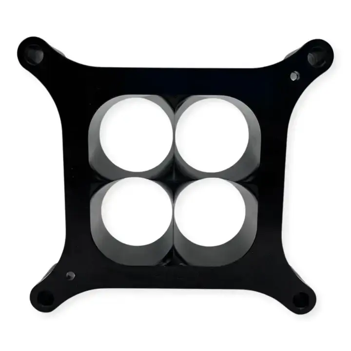 We offer the most complete line of 4-Hole Tapered spacers in 390, 4150, 4500, Q-Jet & 2bbl adapters to provide the high performance consumer with the ability to tune their engine for the maximum performance for any application. Wilson Manifolds is the only manufacturer to offer a choice of tapered spacer heights and produces the only fully CNC machined billet tapered spacer on the market. Wilson Manifolds Tapered spacers will benefit any vehicle that operates under both part and full throttle conditions such as bracket racing using a throttle stop, drag racing, circle track, road racing, off shore power boats, street/strip engines and towing vehicles.