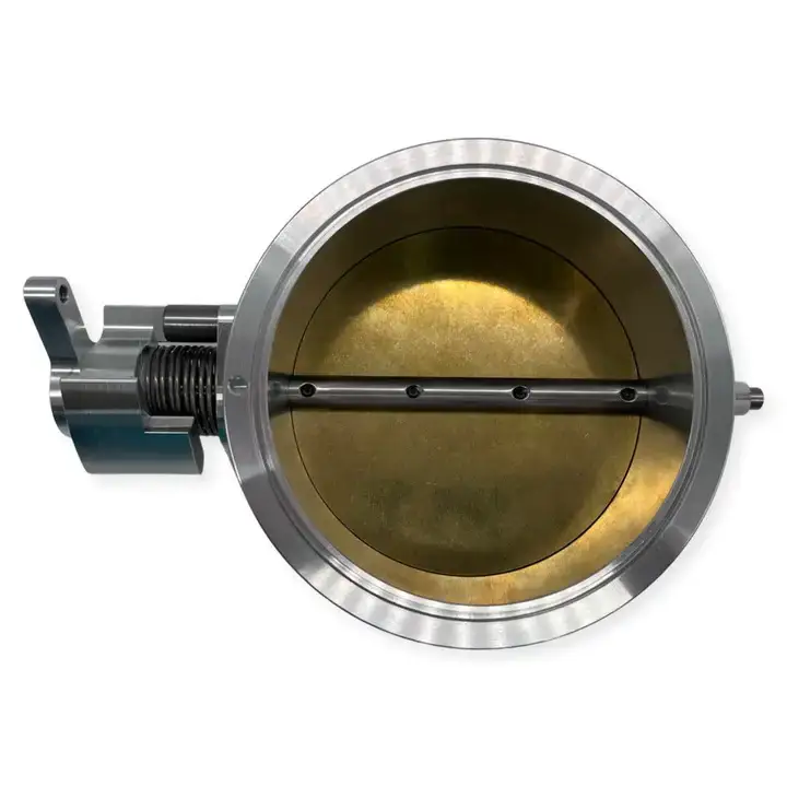 Wilson Manifolds High Flow Throttle Bodies were developed using the latest computer modeling software and test equipment available to produce designs that yield the maximum flow per square inch of cross-sectional area. This results in maximum power for any given throttle body type and size. All throttle bodies feature brass throttle blades to control vibration and reduce thermal expansion Throttle blades are fastened to the throttle shaft using aircraft quality hardware that is both Loctited and peened to assure positive retention of the blades. Throttle shafts are machined to decrease their cross-sectional area, which increases the actual cross-section available for airflow. All throttle bodies are machined from billet 6061-T6 aluminum on precision CNC machining centers for consistent quality and light weight. These high flow throttle bodies are available in sizes from 80mm, 90mm, 95mm, 105mm, and 123mm.