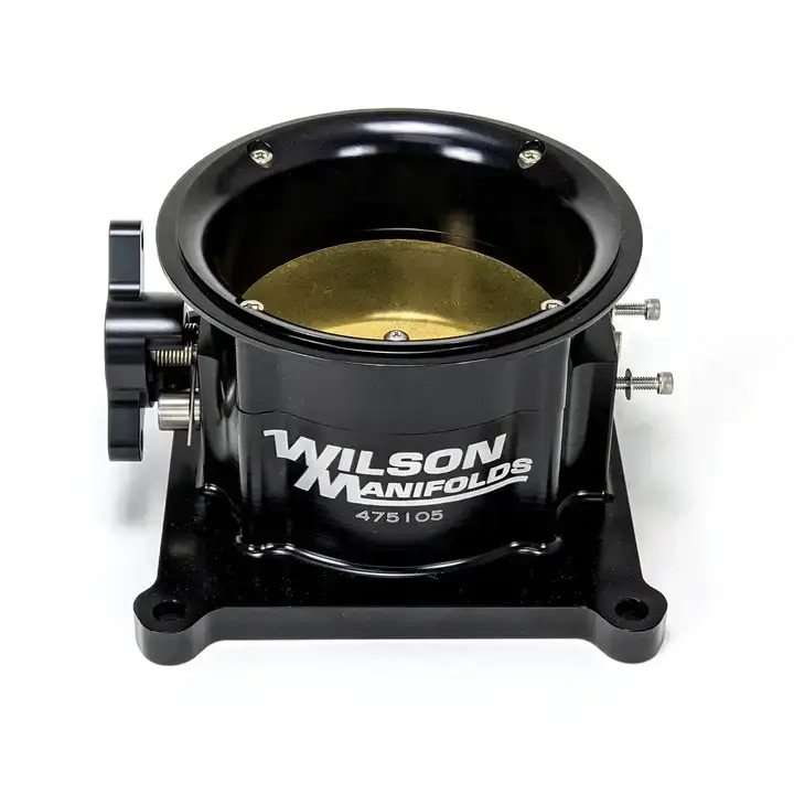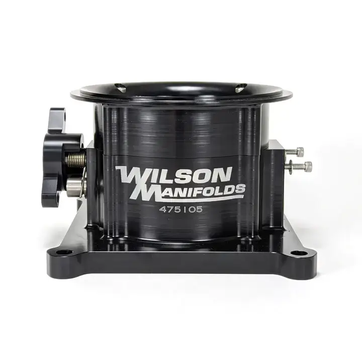 This is a Wilson Manifolds Fatmouth 4150 105MM Billet Throttle Body 2000+ CFM - Anodized Black