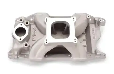 Wilson Manifolds - the leader in induction design and technology - Wilson intake manifolds have shown a 25 HP gain over the competition in independent dyno testing. The Wilson intake features a 4150 Carb flange and fuel injection bosses cast on the manifold.